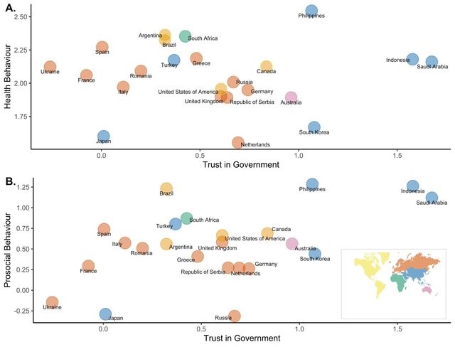 Gegevens van HoeGekIsNL deelnemers aan de coronavragenlijst zijn gebruikt in een groot internationaal onderzoek van bijna 24.000 mensen in 23 landen. Groter vertrouwen in de overheid in de omgang met het coronavirus hing samen met sociale en gezondheidsgedragingen zoals mondkapjes dragen en binnen blijven bij symptomen. Overheden die goed georganiseerd zijn, helder communiceren over het coronavirus, en de lasten eerlijk lijken te verdelen, werden meer vertrouwd. In die landen hielden mensen zich ook beter aan de maatregelen. Lees het artikel hier.